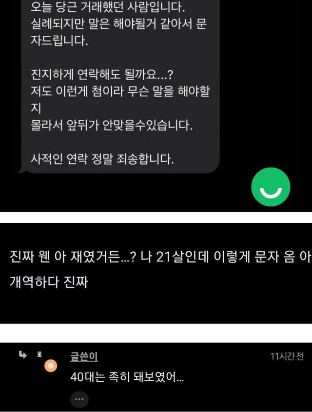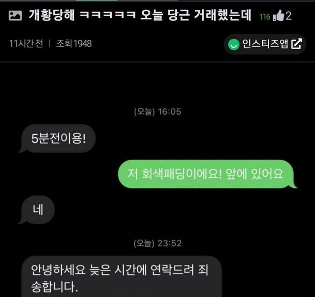 당근 거래 후 밤 12시에 날아온 스윗한 문자