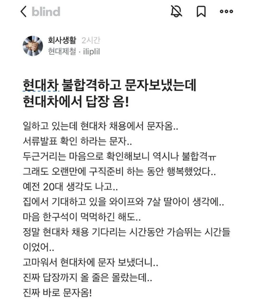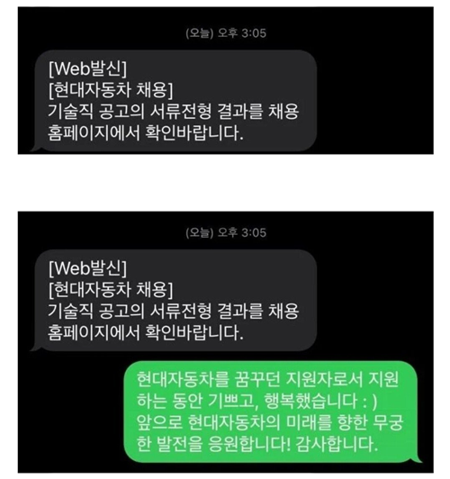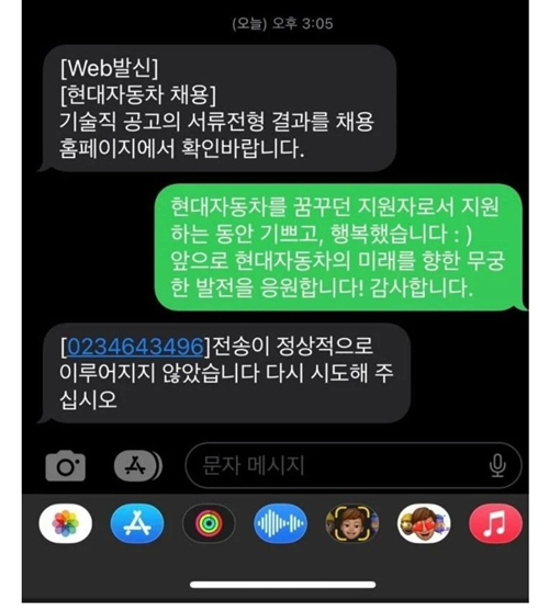현대차 불합격하고 문자 보냈는데 답장 옴!!
