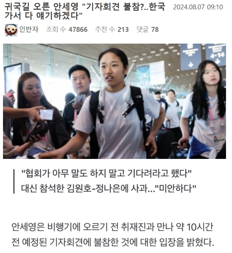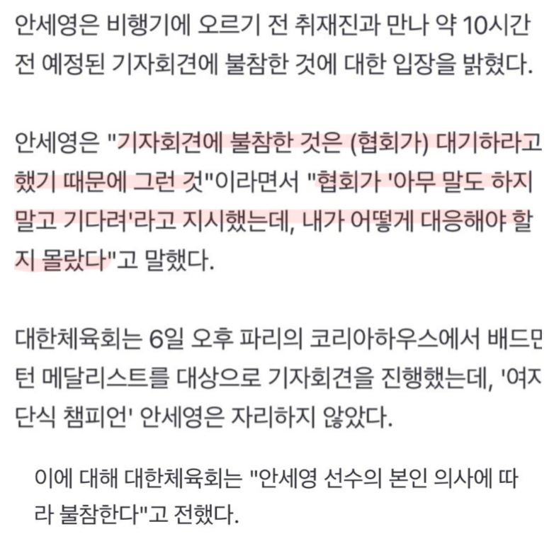안세영이 배드민턴 기자회견 불참한 진짜 이유