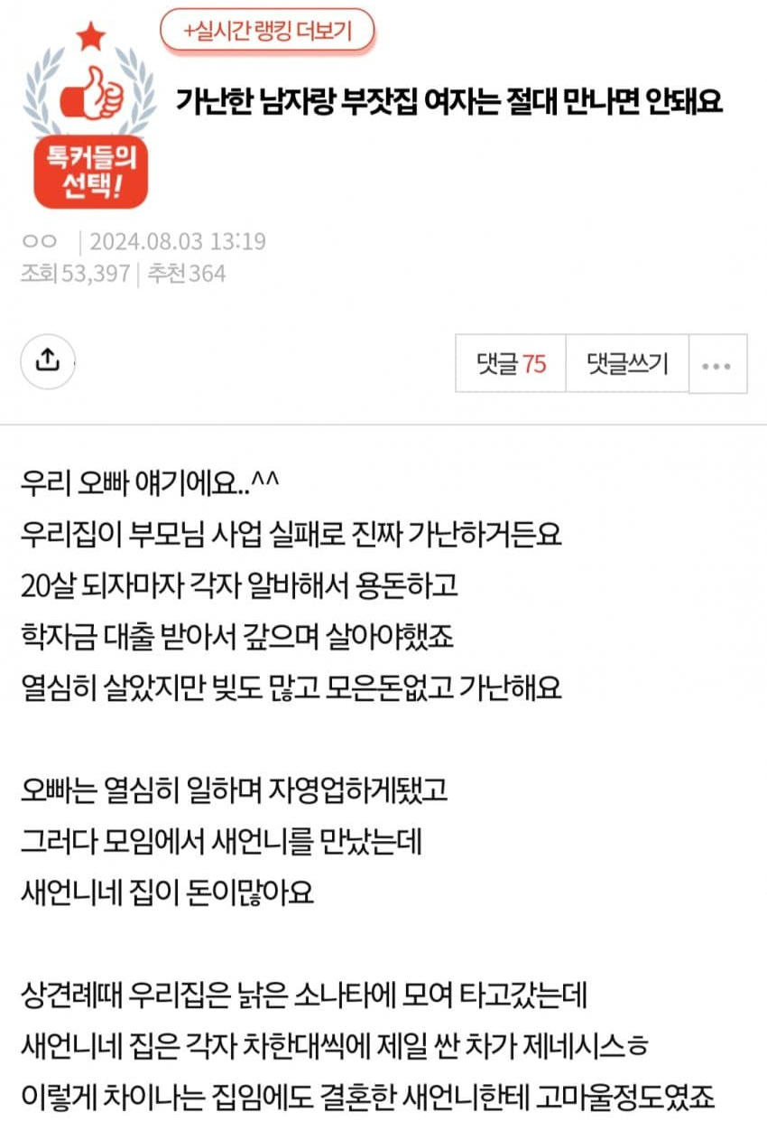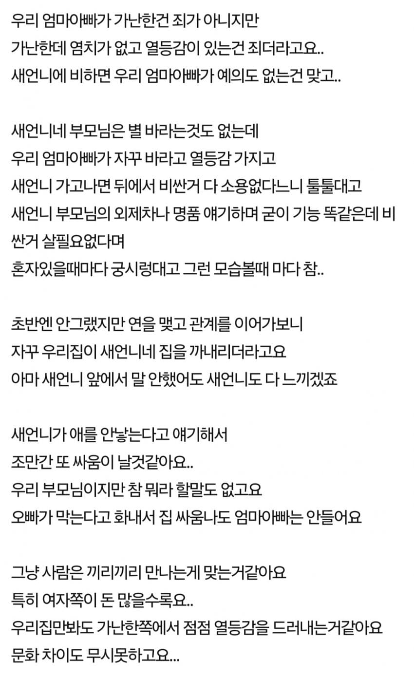 가난한 남자랑 부잣집 여자는 절대 만나면 안돼요