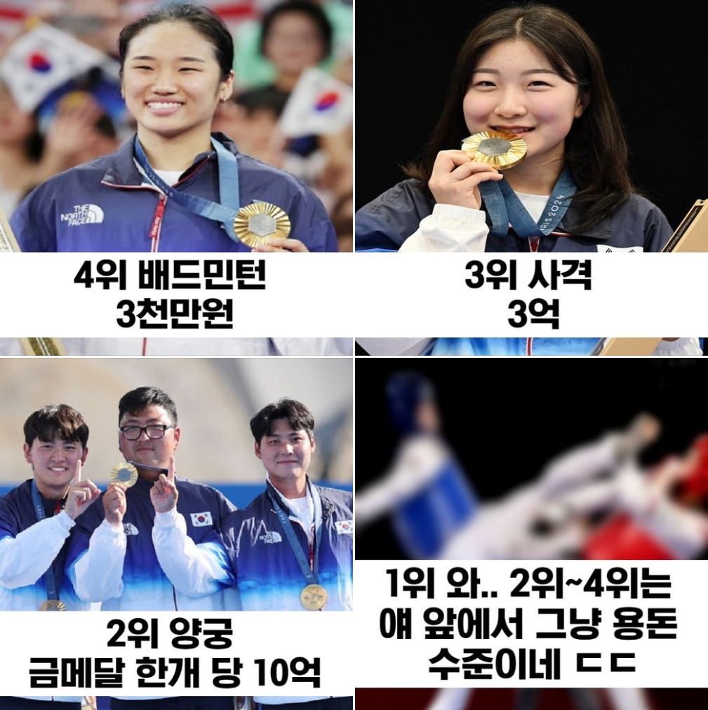 차이 심각하다는 각 종목별 협회 금메달 포상금 TOP4