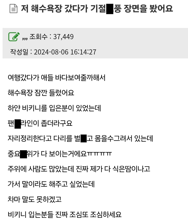 저 해수욕장 갔다가 기절초풍 장면을 봤어요…