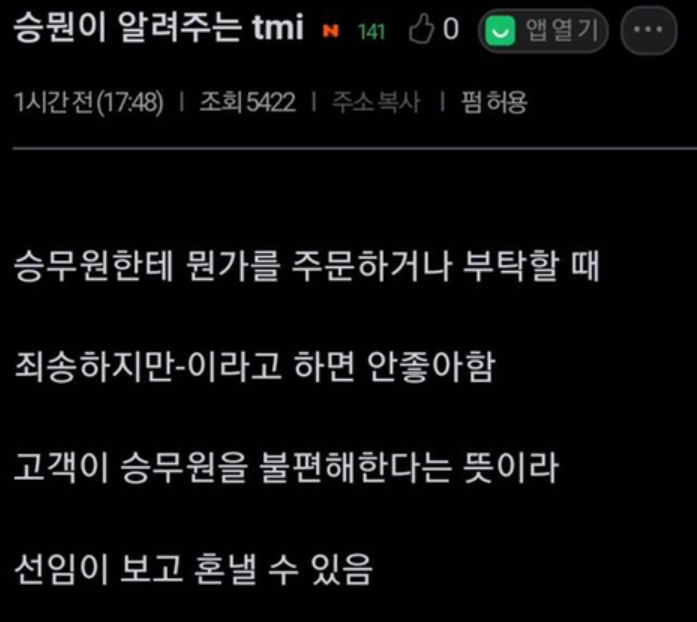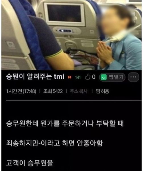 의외로 승무원한테 하면 안 된다는 말