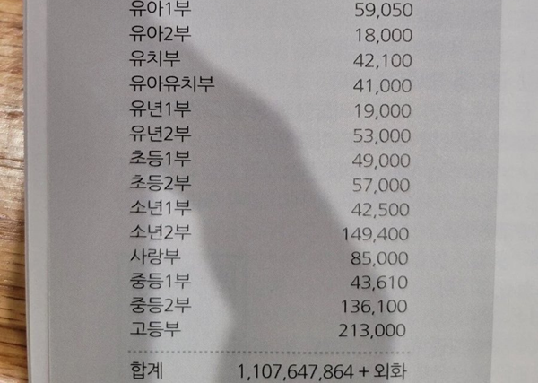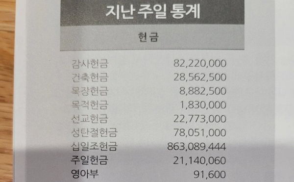 어느 교회의 일주일치 헌금ㄷㄷㄷ