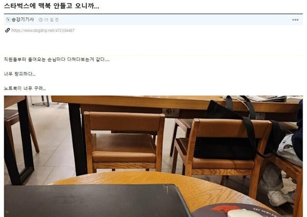 스타벅스에 맥북 안들고 오니까 창피하다…