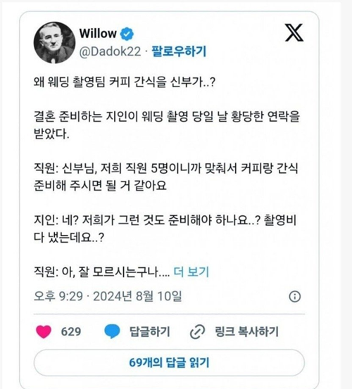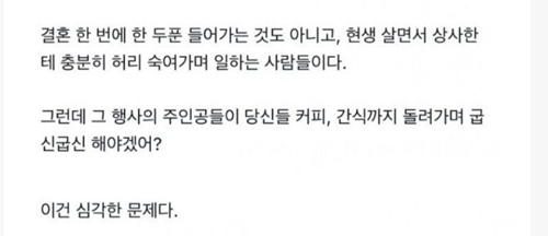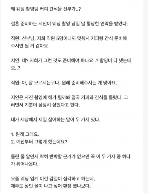 요즘 웨딩촬영 간식문화 논란