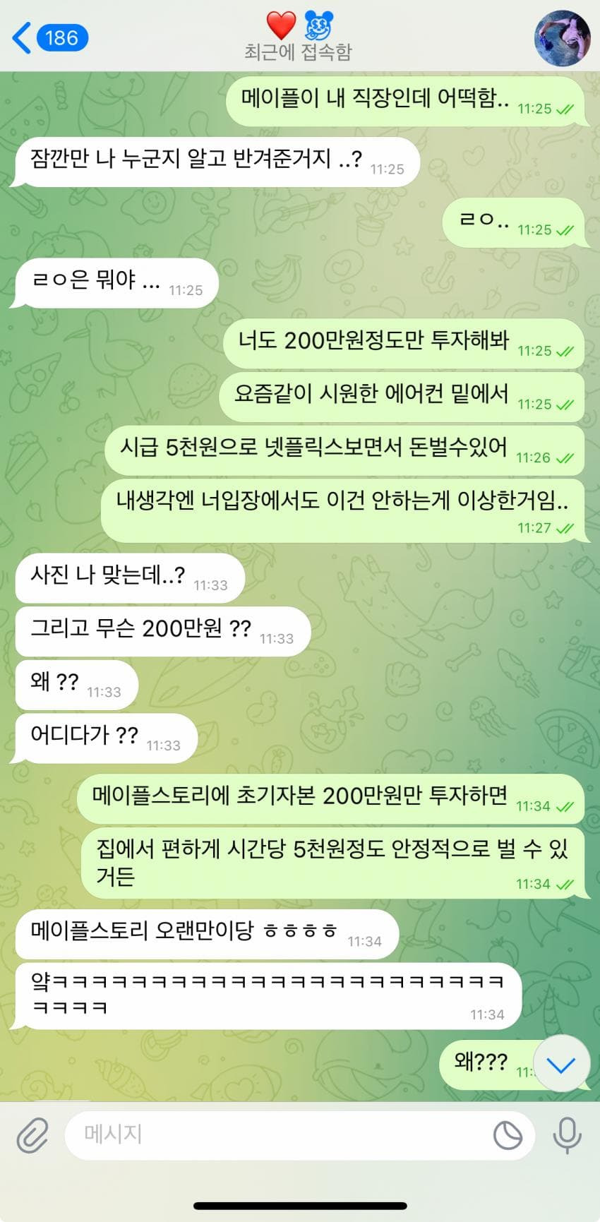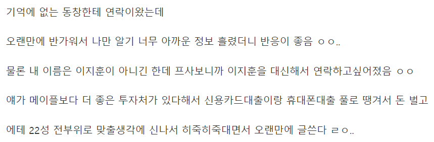 기억에 없는 동창한테 연락왔다 ㄷㄷ