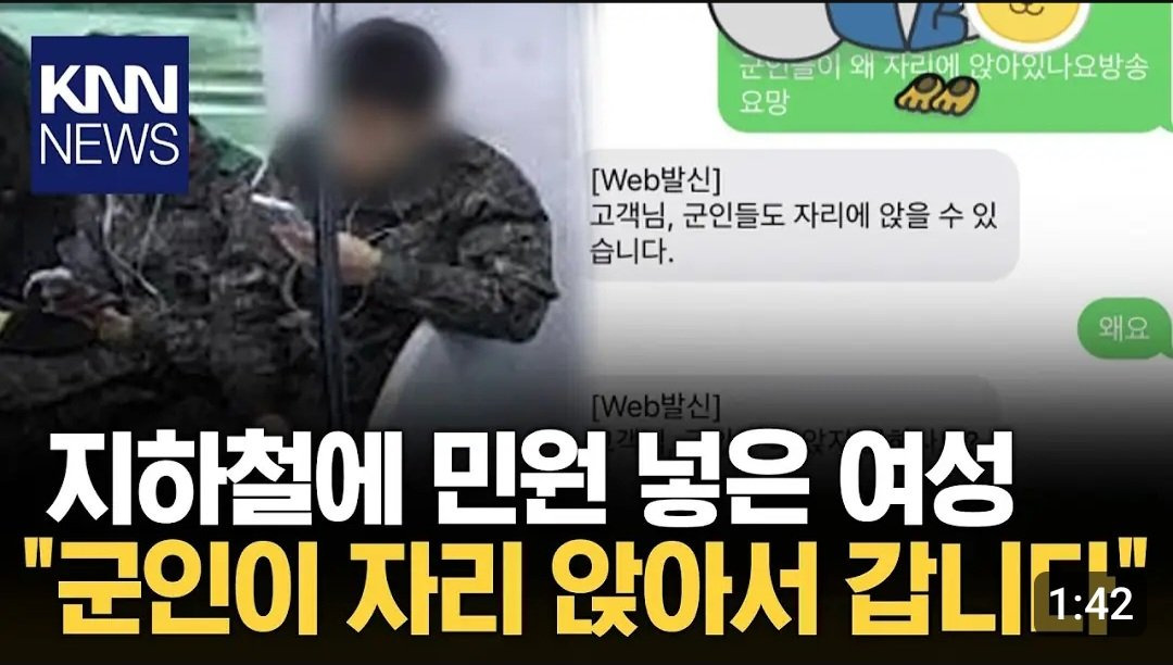 군인이 왜 앉아서 가? 지하철에 민원 넣은 여성 ㄷㄷ
