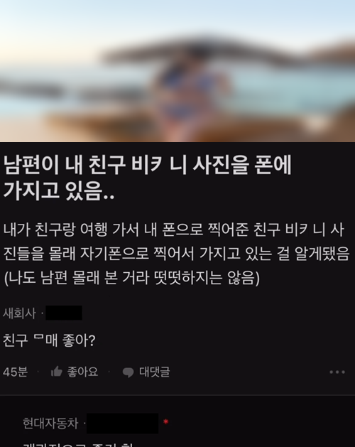 남편이 내 친구 비ㅋ니 사진을 몰래 가지고 있음