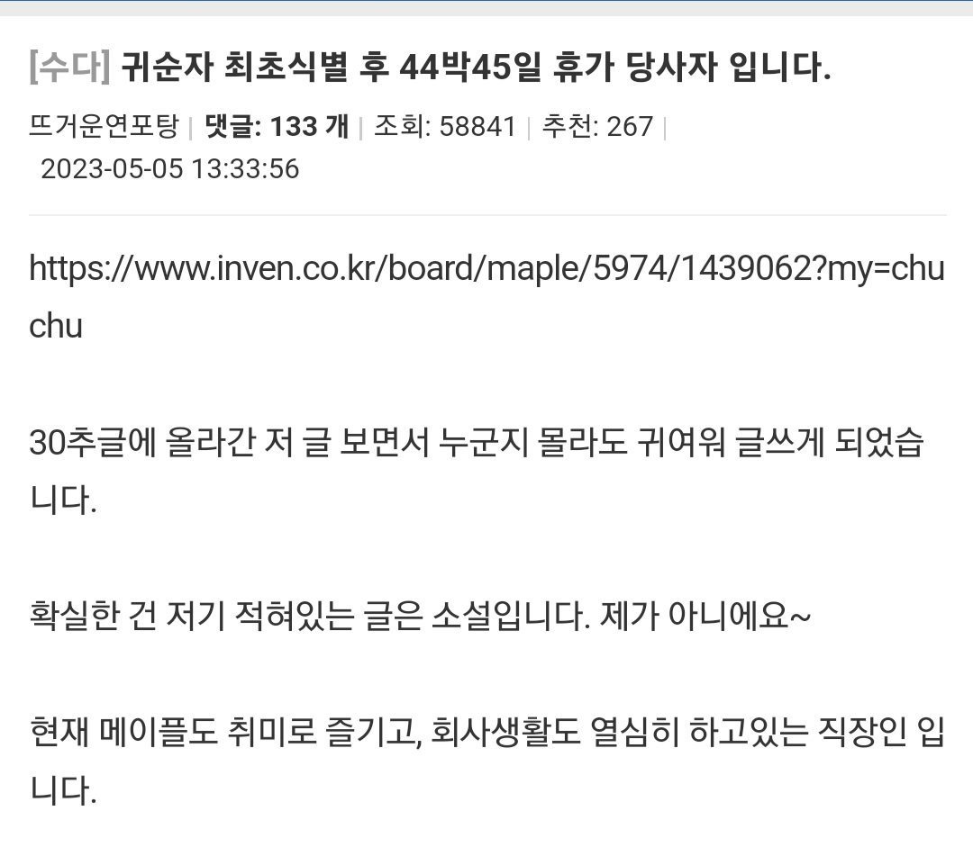 전설의 44박 45일 휴가받은 썰 ㄷㄷㄷ