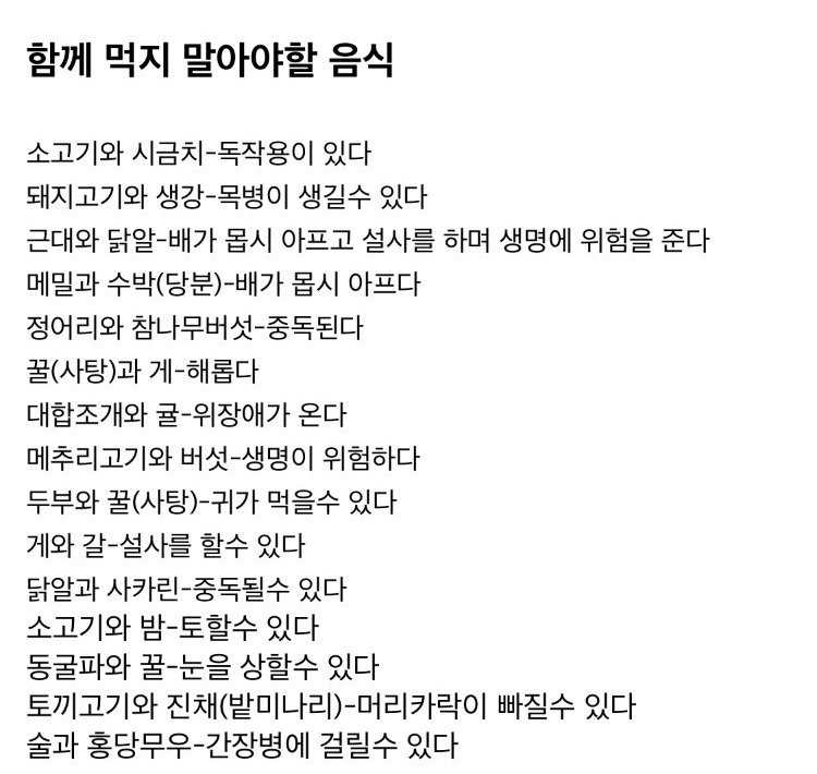 북한이 알려주는 함께 먹지 말아야할 음식