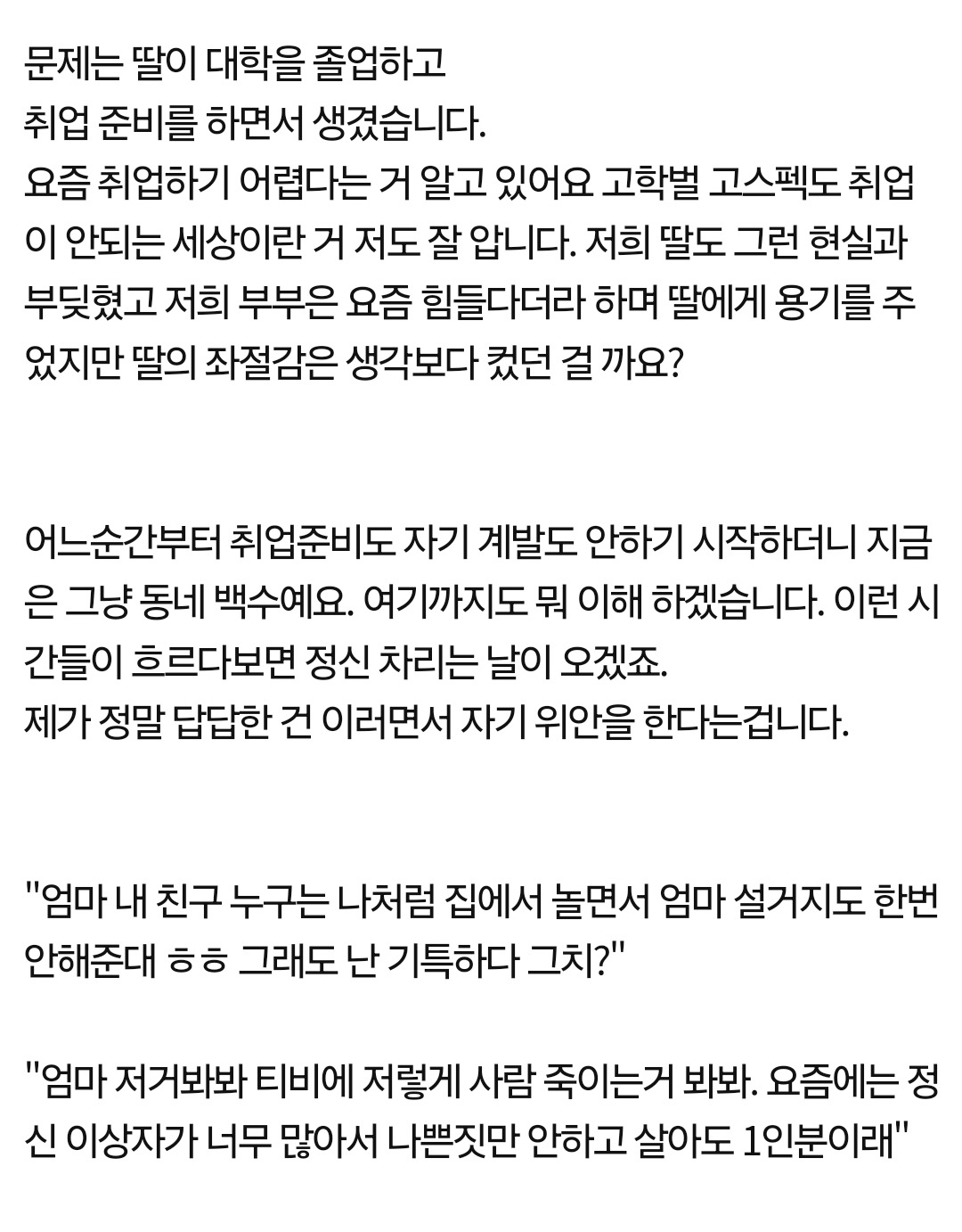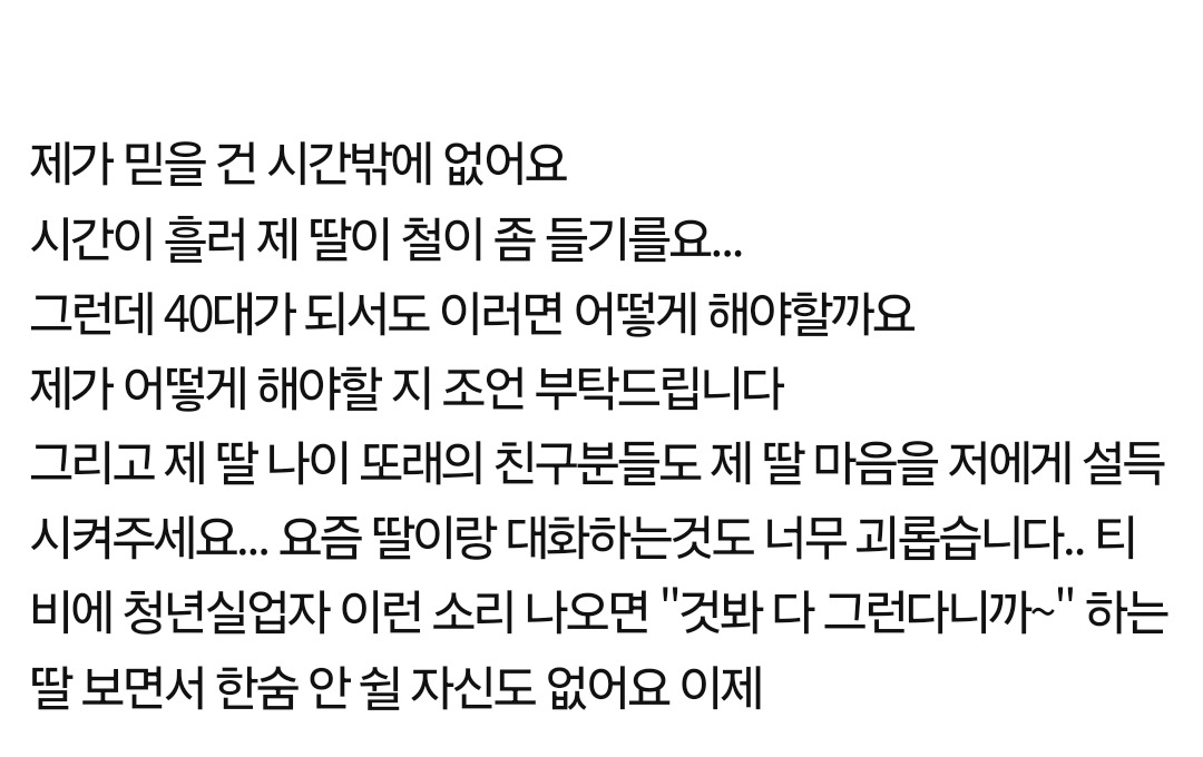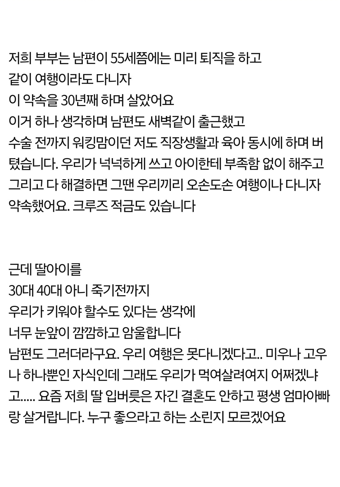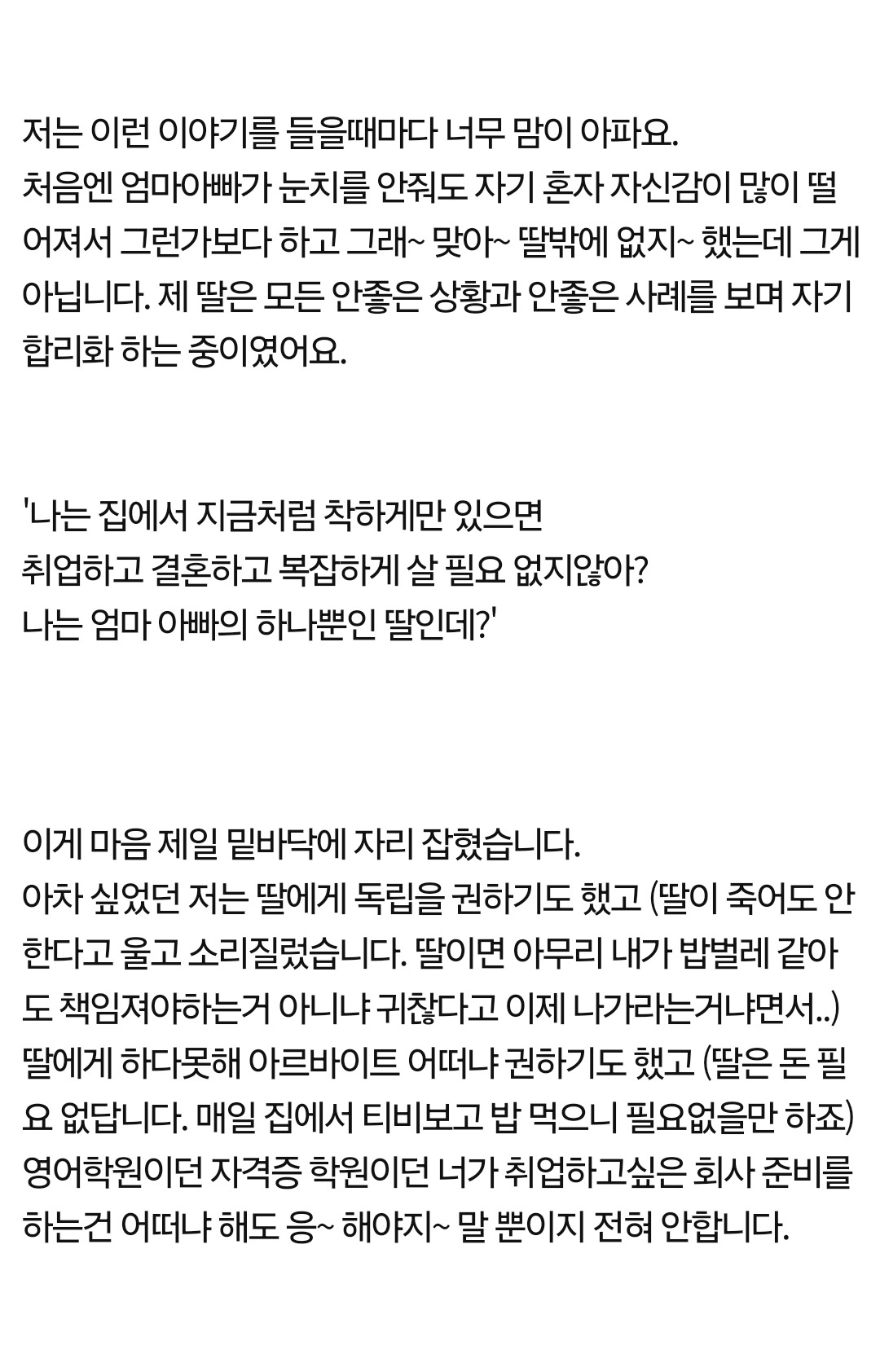 요즘 사회현상 중 하나인 캥거루족에 고통받는 50대 엄마의 글