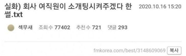 회사 여직원이 소개팅시켜주겠다고 했던 썰