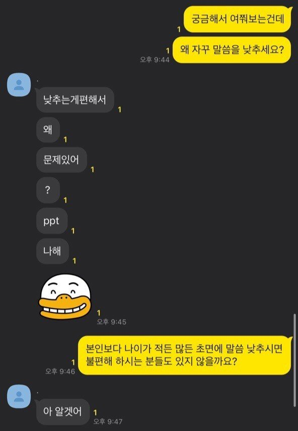 조별과제 22학번과 17학번의 카톡