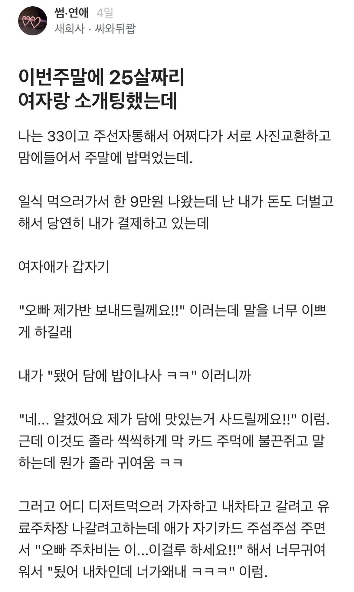 이번주말에 25살짜리 여자랑 소개팅했는데