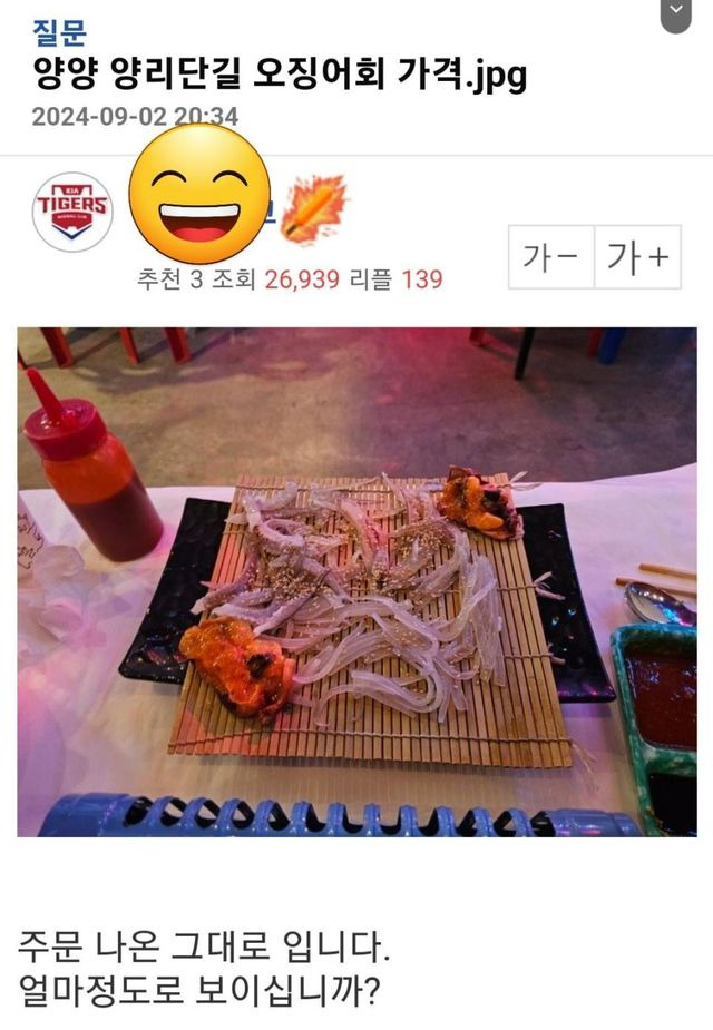 양양 양리단길 오징어회 가격 ㄷㄷㄷㄷ