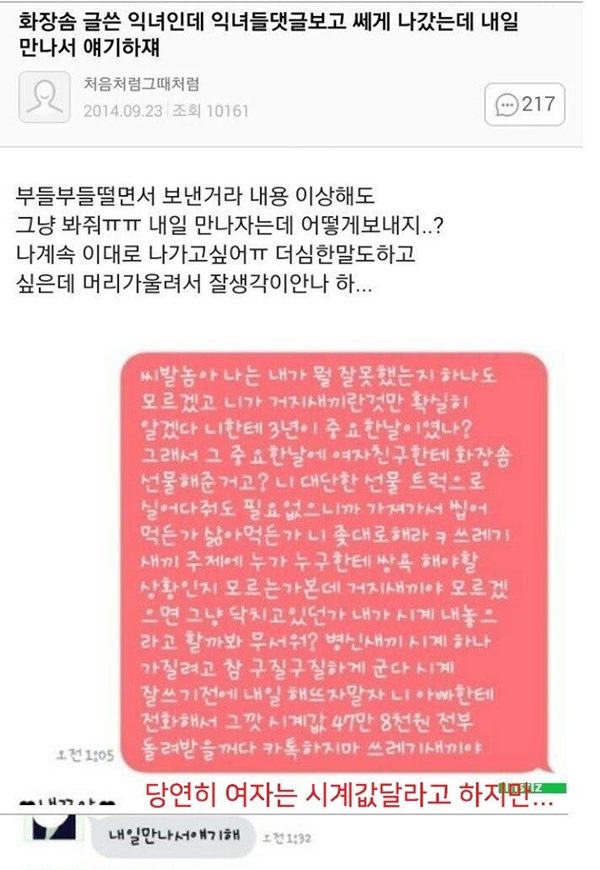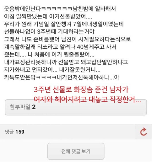 남자친구가 3주년 선물로 여친한테 준 선물