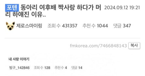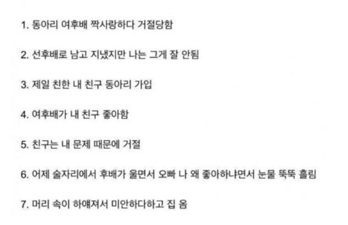 동아리 여후배 짝사랑 하다가 머리 하얘진 이유