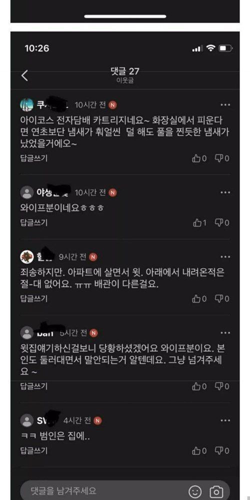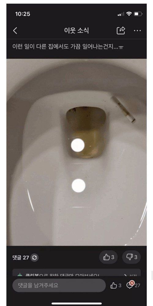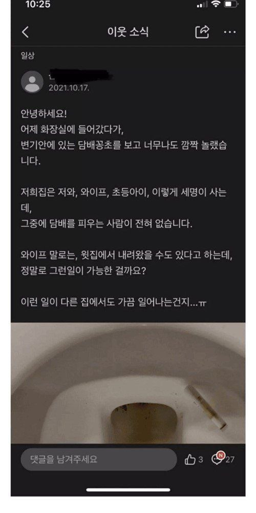 담ㅂ꽁초 나온 아파트 화장실 미스테리