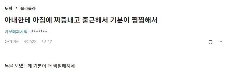 아내에게 아침에 짜증내고 출근한 블라인