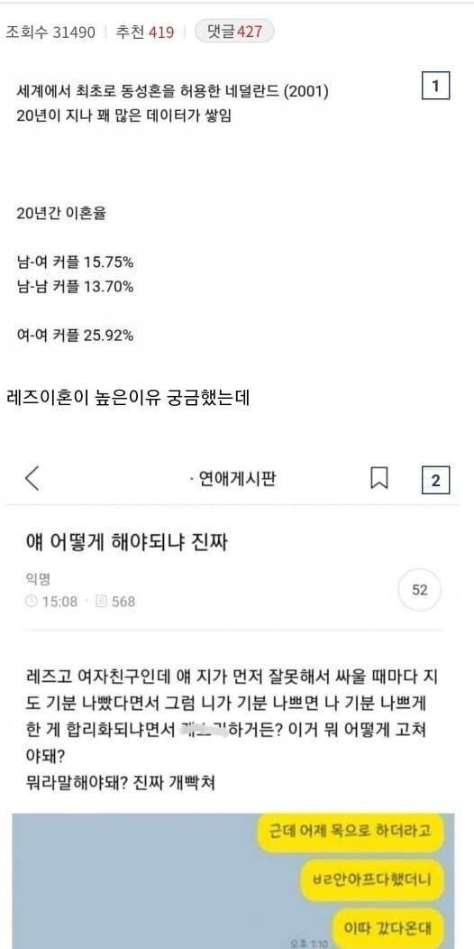 레ㅈ비언 부부들이 전세계적으로 이혼율이 높은 이유 ㄷㄷ