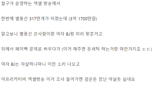 철구 엑셀 방송 큰 거 하나 터짐 ㄷㄷ