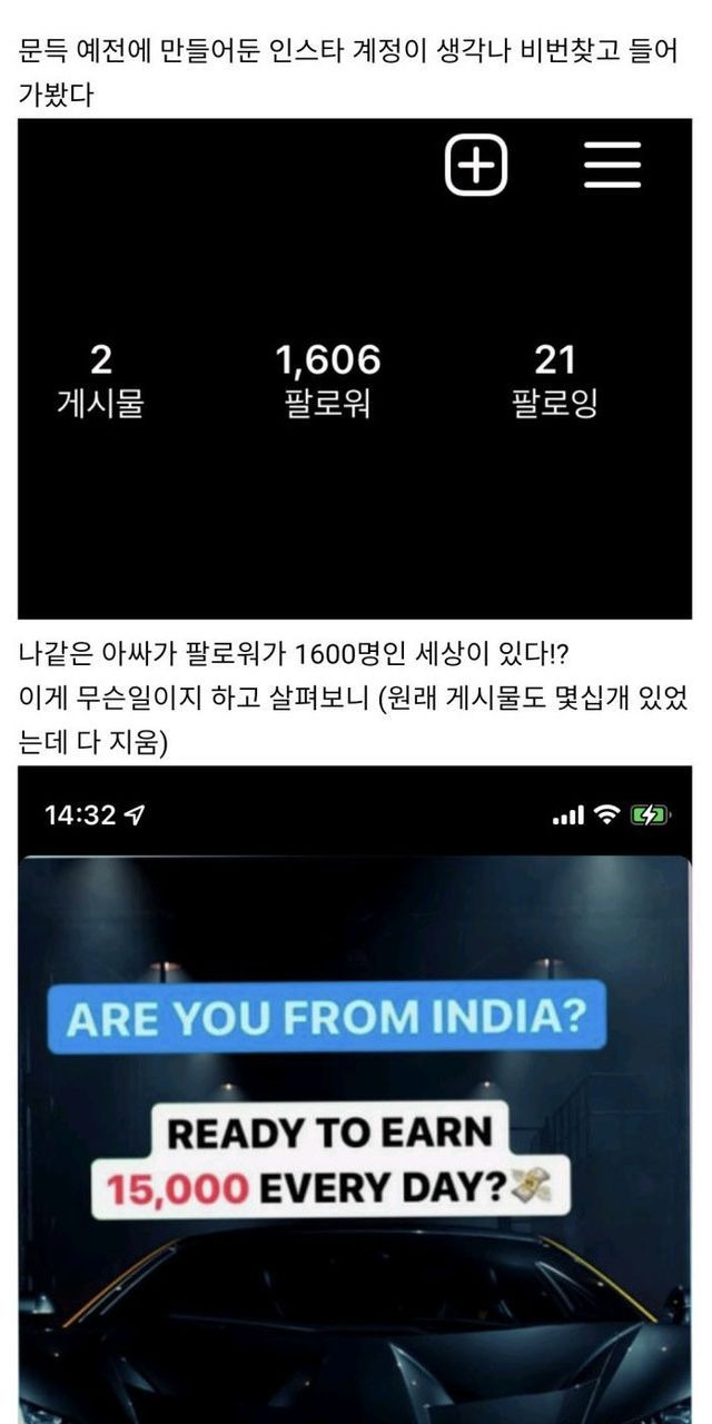 오래된 인스타 계정에 들어가 봤다