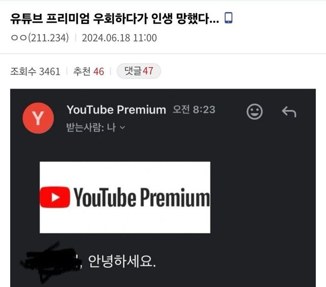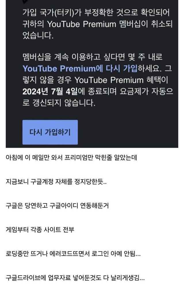 유튜브 프리미엄 우회하다가 인생 망한 사람