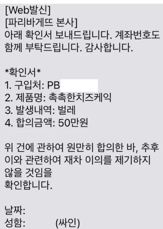파리가 들어간 파리바게뜨 빵.. 본사의 합의 조건ㄷㄷ