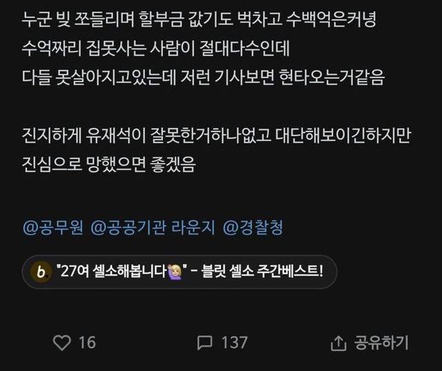 유재석 대단하지만 ㅁ했으면 좋겠다는 공무원