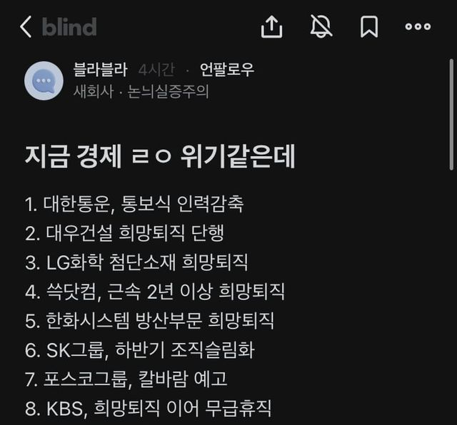 지금 경제 ㄹㅇ 위기같다는 블라인ㄷㄷ