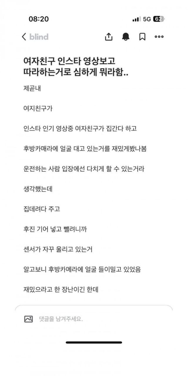 여친이 인스타 영상보고 따라하는거로 심하게 뭐라함..