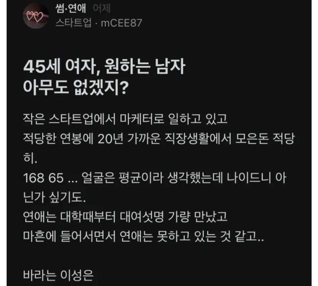 블라) 45세 여성이 원하는 남자의 조건