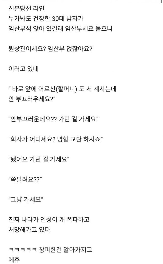 지하철 임산부 배려석 앉는 청년에게 한마디…