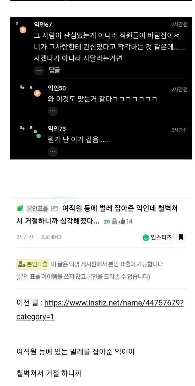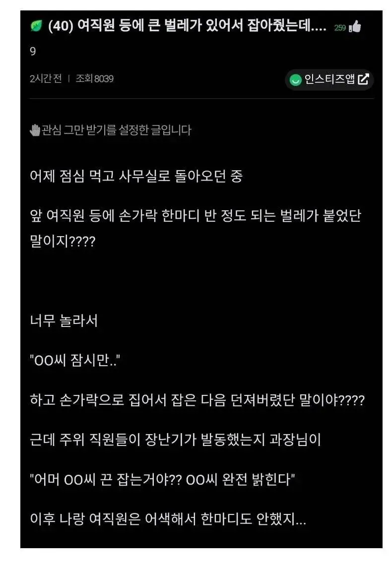 여직원 등에 벌레가 있어서 잡아줬는데…