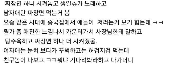 중국집에서 낮술 먹다 서비스 제대로 받음