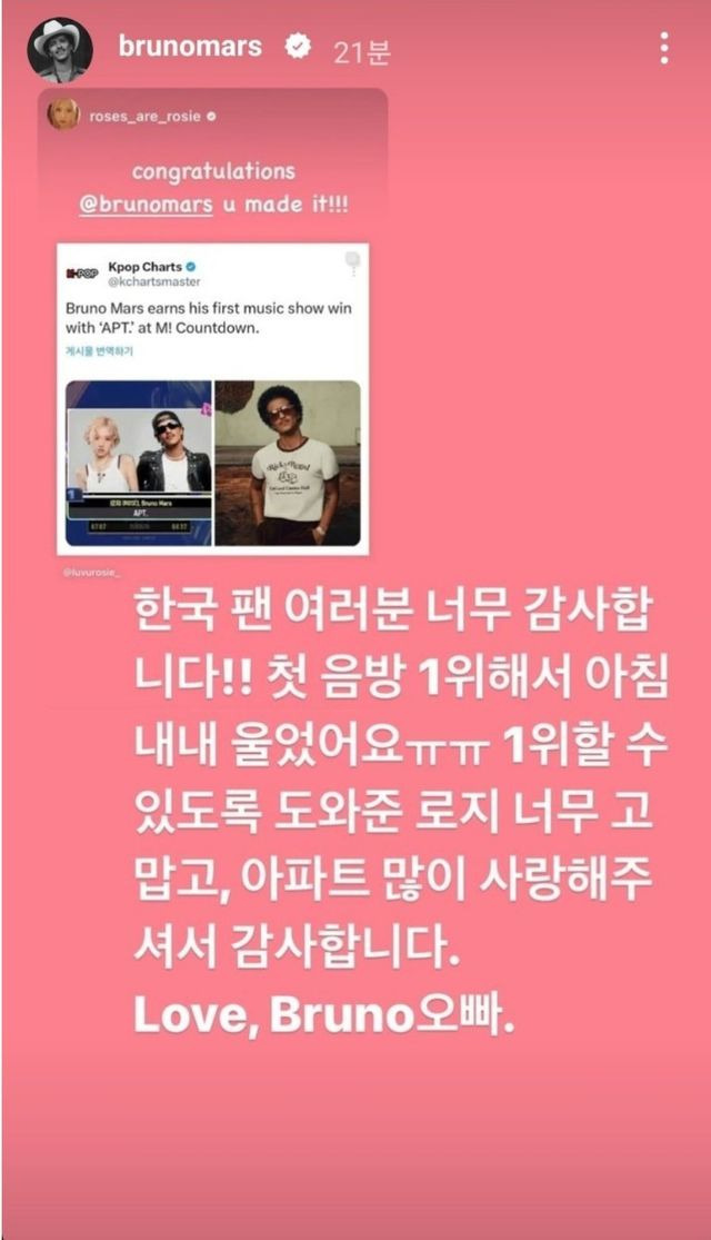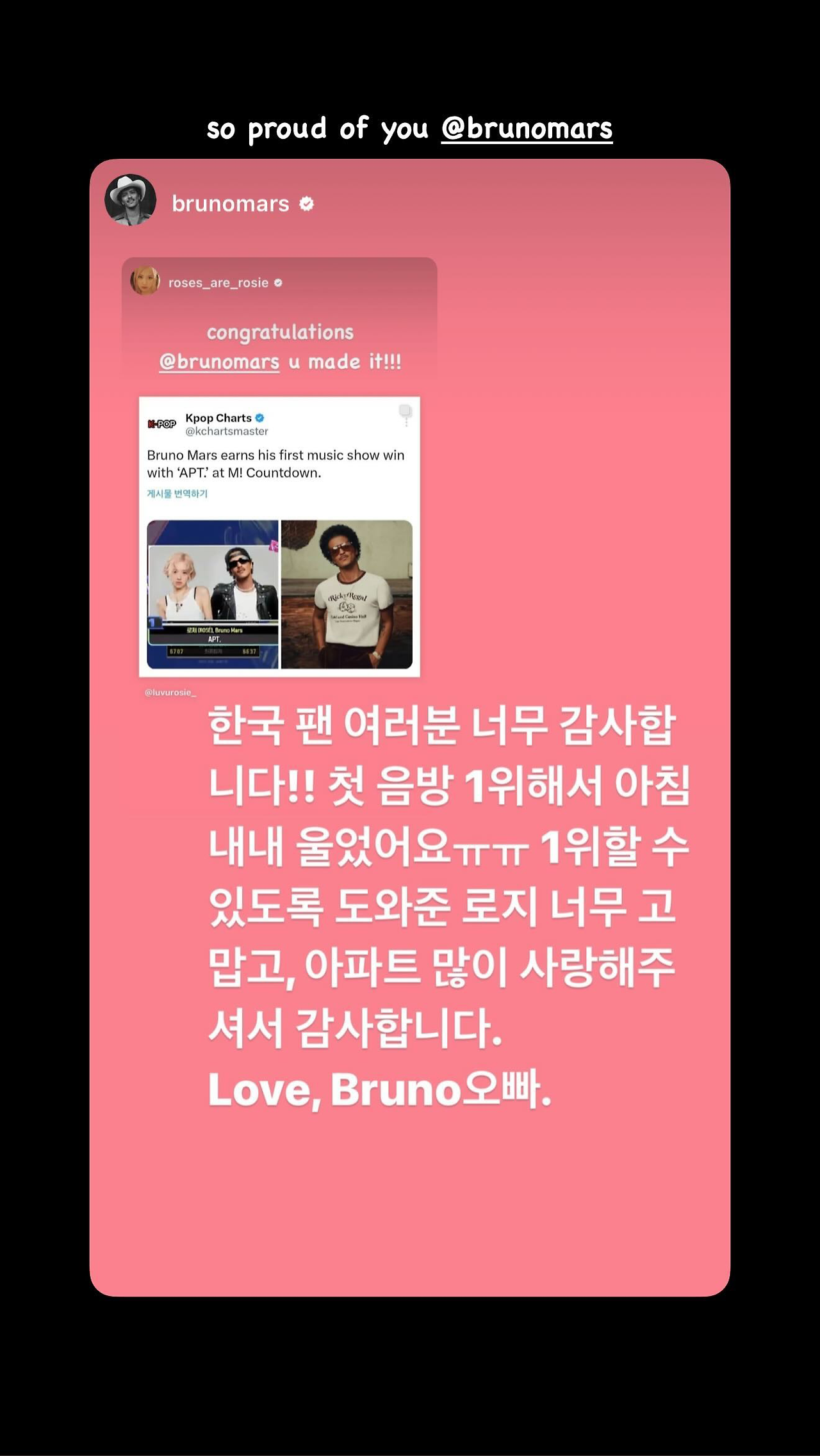 브루노마스 인스스 업뎃(+로제 답스토리)