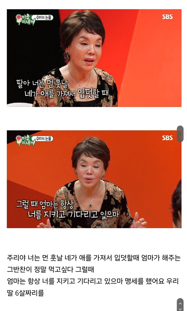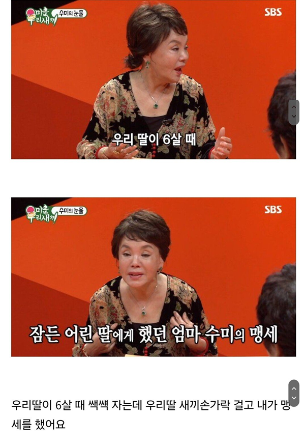 故김수미 잠든 6살 딸에게 새끼손가락 걸고 했던 맹세