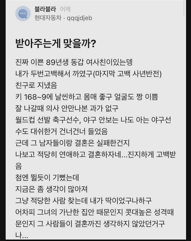 2번 고백해서 ㄲ였는데 갑자기 결혼하자는 여사친
