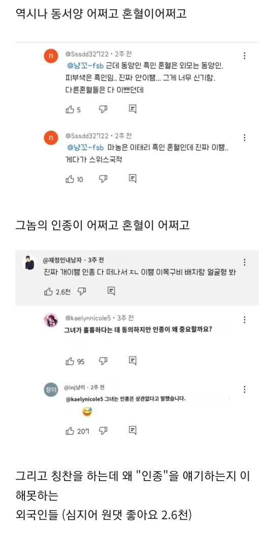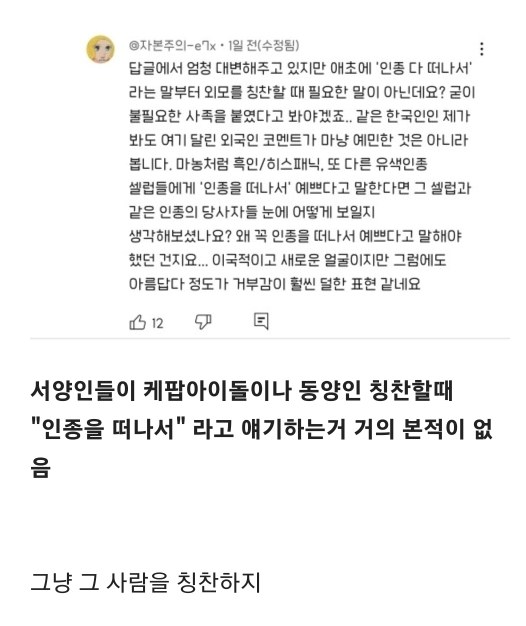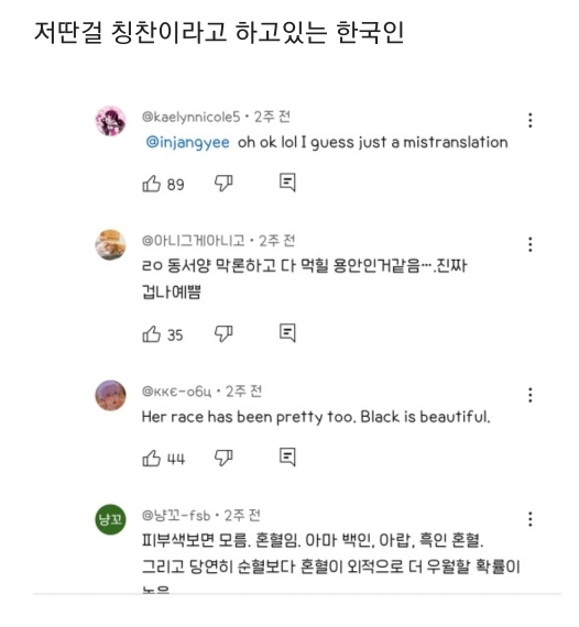 인종ㅊ별 문제성 발언인지도 모르고 칭찬하는 한국인들