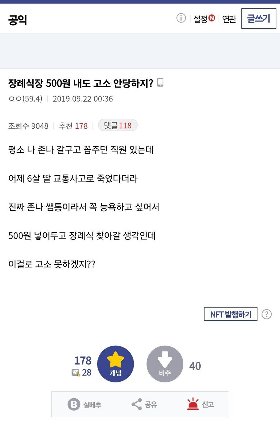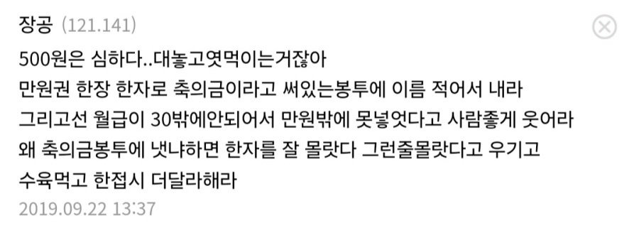 직장상사 딸 ㅈ었는데 축의금 500원 넣겠다는 사람