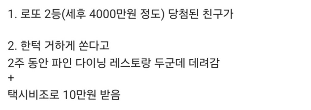 로ㄸ 당첨돼서 한턱 쏜다고 해놓고 돈내라는 친구