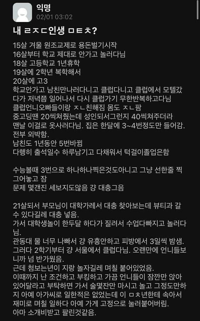 날ㄹ리 불량 가ㅊ소녀의 인생