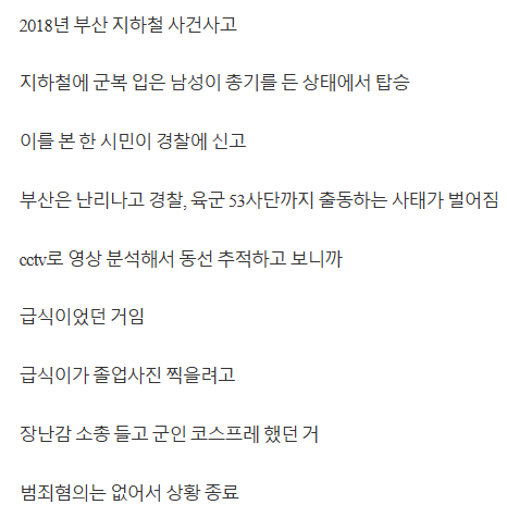 지하철에 ㅊ 든 군인이 탔어요 사건 레전드