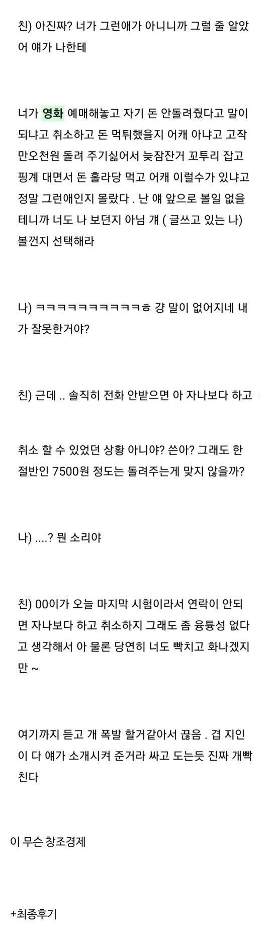 친구 3명한테 욕 하고 연 끊은 이유