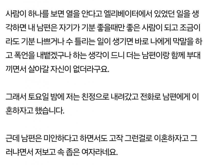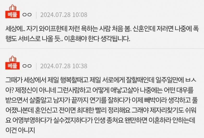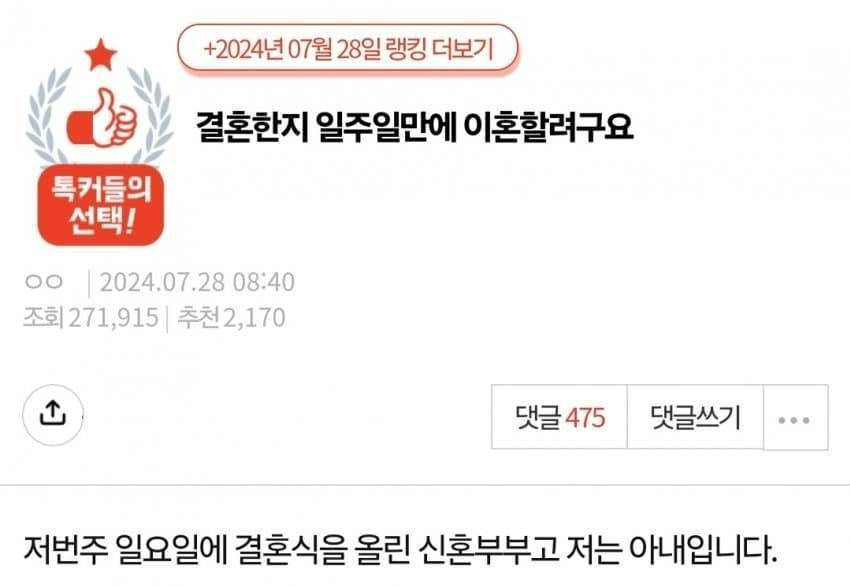 결혼 일주일만에 이혼 결심한 아내