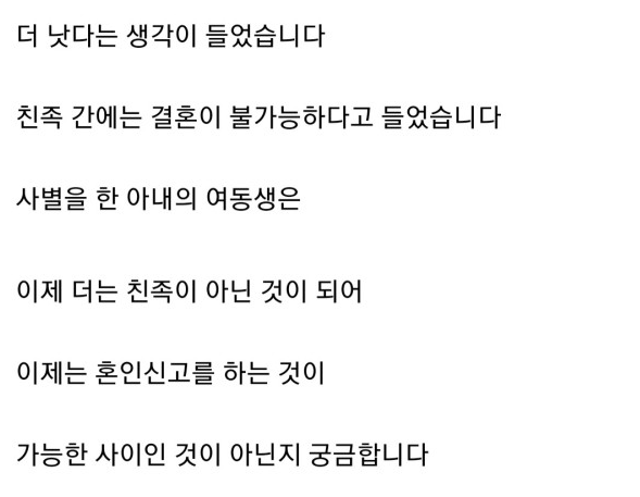 처제랑 결혼하고 싶습니다