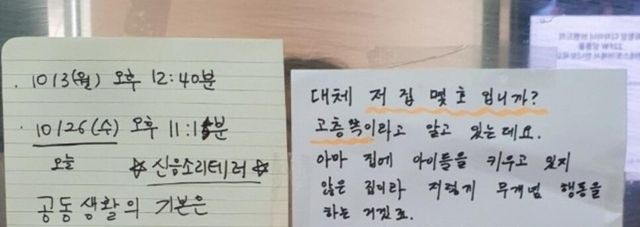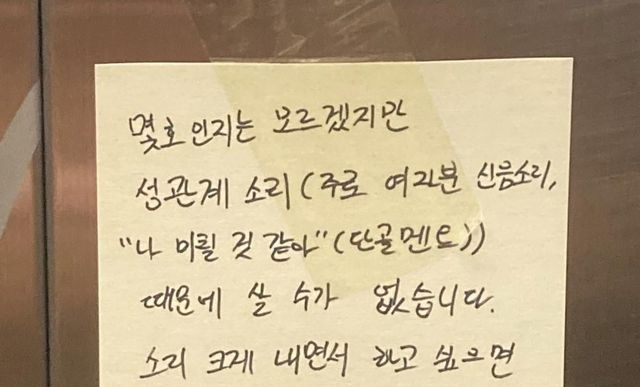 ㅅ음 소리때문에 미ㅊ겠다는 엘베에 붙여진 호소문