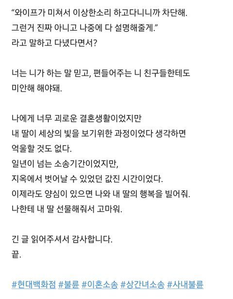 현ㄷ백화점 사내 ㅂ륜 – 상ㄱ녀 소송 후기