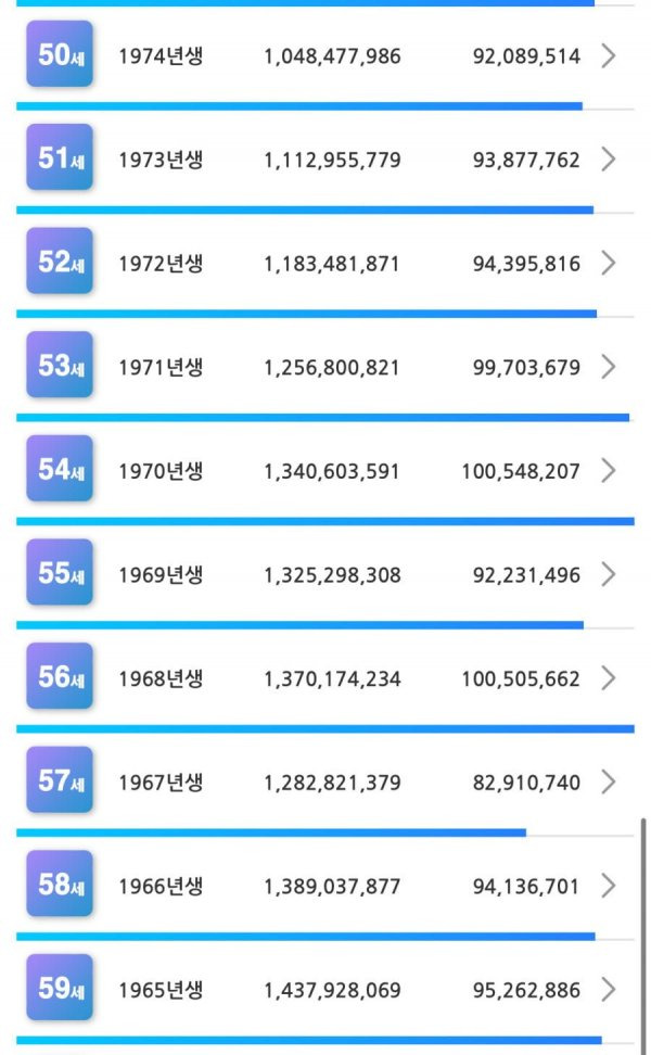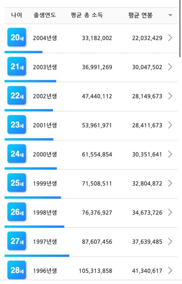 대한민국 연령별 평균 연봉 68년생의 위엄